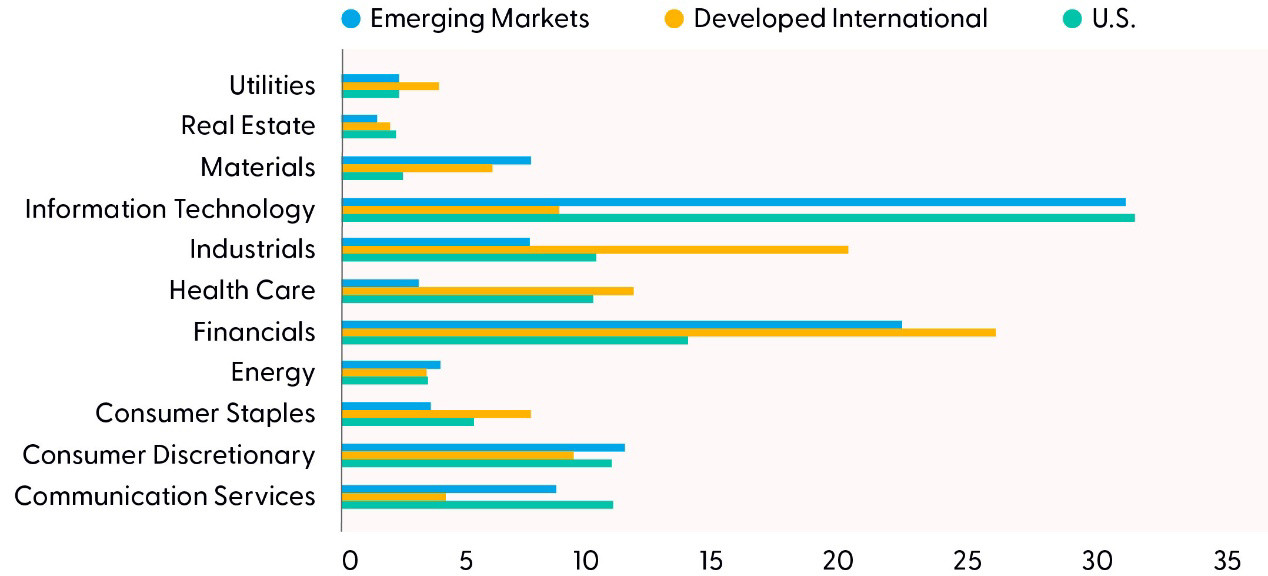 Our hesitation to jump on the EM bandwagon until our upgrade to neutral in early 2025 was centered on earnings. We would attribute much of the EM underperformance since the 2008–2009 Global Financial Crisis to earnings disappointment (though a strong U.S. dollar was another meaningful piece of the story). Year after year, EM fell short of optimistic earnings expectations. In fact, the consensus estimate for EM earnings per share (EPS) this year of around $90 is the same level as 2011, while EPS for the S&P 500 is up over 170% over the same time period.